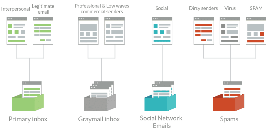 Classification automatique des emails, désinscription sécurisée en 1 clic et anti-spam arrêtant 99,99% des spam.