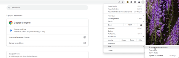 Pour limiter les attaques, Google a d’ores et déjà déployé un patch correctif lors de ses dernières mises à jour. Pour savoir si votre navigateur Chrome est bien patché, il vous suffit d’aller dans le module Google, de cliquer sur les 3 petits points en haut à droite, de descendre votre curseur jusqu’à « Aide » puis « À propos de Google Chrome ». Vous aurez alors affiché sur votre écran la version actuelle de Chrome et la confirmation que ce dernier a bien été mis à jour. La version 99.0.4844.84. correspond au correctif proposé par Google. Il est également possible d’automatiser les mises à jour de Chrome dans la partie « Option » puis Toujours activer les MAJ » .